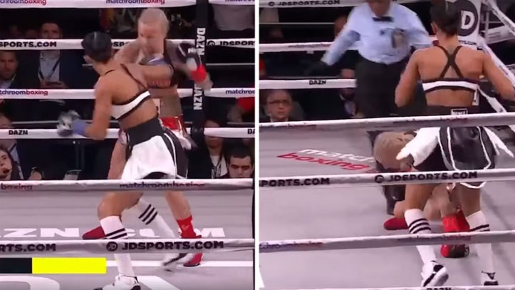 La puertoriqueña no perdió ni un segundo cuando sonó la campana, se abalanzó sobre su rival a la que no dejaba espacio para coger aire, tras 37 segundos un gancho de izquierdas directo al abdomen terminó por doblegar a la austriaca.