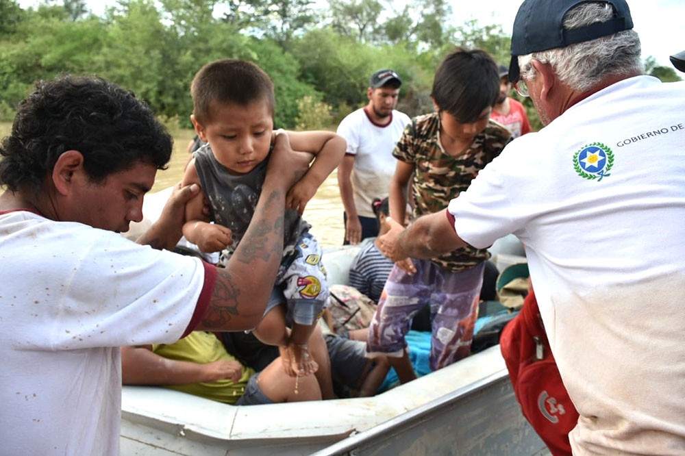 La ministra de Asuntos Indígenas y Desarrollo Social, Edith Cruz indicó que a través de un trabajo coordinado se realiza el operativo con helicóptero y gomones hasta la ruta 54, desde donde son trasladados vía terrestre al centro de evacuados de Santa Victoria.