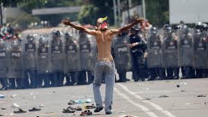 Manifestante enfrentando a las Fuerzas Armadas de Venezuela.