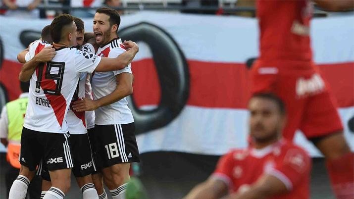 River: Franco Armani; Lucas Martínez Quarta, Robert Rojas y Javier Pinola; Nicolás De la Cruz, Leonardo Ponzio, Ignacio Fernández y Milton Casco; Juan Quintero; Lucas Pratto y Rafael Santos Borré. DT: Marcelo Gallardo.