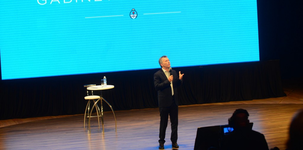 Macri fue el único orador de la reunión en la Ballena Azul del CCK y luego partió para una recorrida por las obras del Paseo del Bajo, en la que se mostró con María Eugenia Vidal y Horacio Rodríguez Larreta.