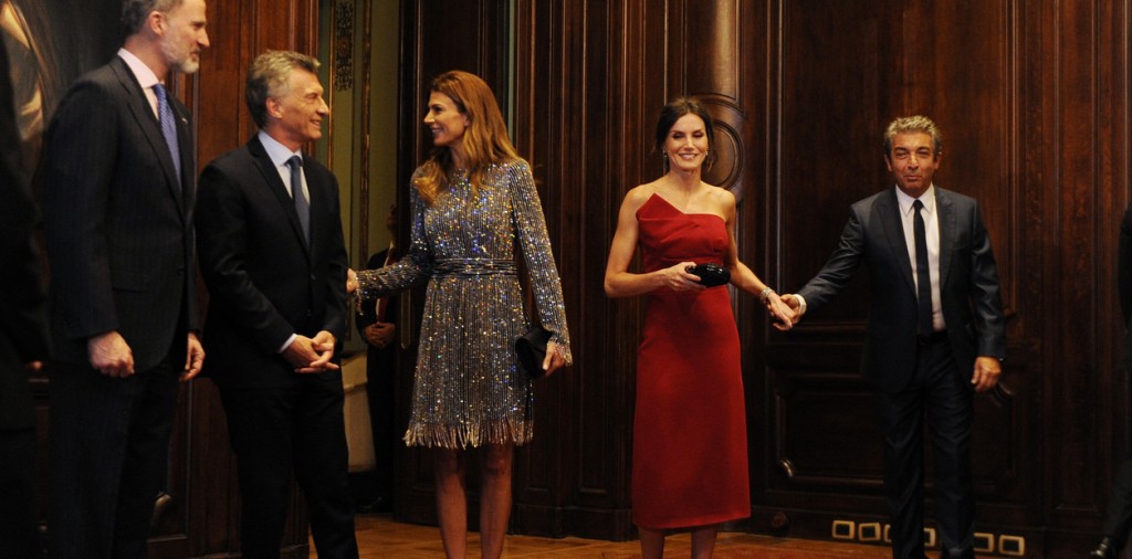 A las 18.30 en punto la primera dama Juliana Awada y la reina Letizia entraron primeras a los salones de La Maison, y atrás sus maridos, el Presidente y el Rey.