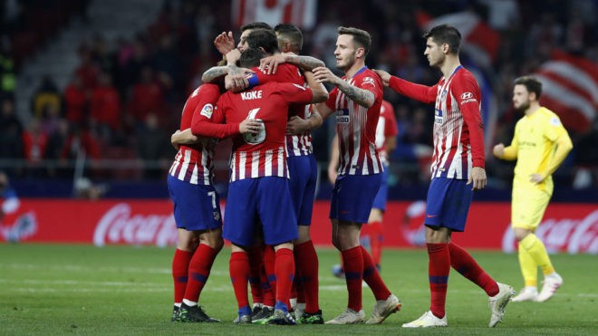 Oblak; Arias, Giménez, Godín, Filipe; Koke, Rodrigo, Thomas, Saúl; Griezmann y Morata.
