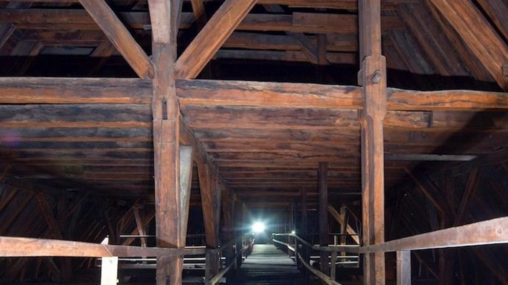 Esta construcción de madera, como la situada en el interior de la aguja.
