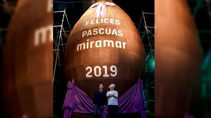 Miramar hizo un Huevo de Pascuas de una altura de 10,5 metros, 6 metros de diámetro.Le sacó el récord a Italia.