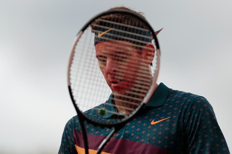 La preocupación de Del Potro en varios tramos del partido, cuando no encontraba el rumbo y acarreaba problemas en la rodilla derecha