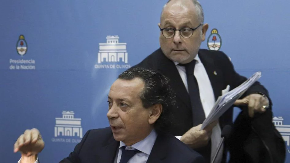 El ministro de producción, Dante Sica (sentado) y el canciller Jorge Faurie.