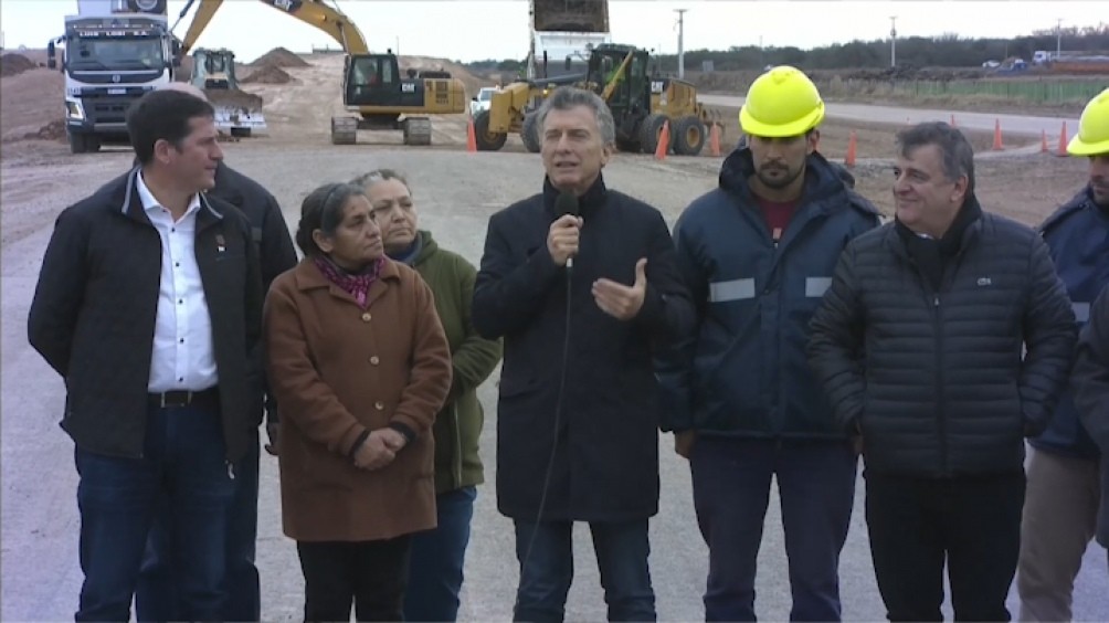 Mauricio Macri, junto al intendente de Arroyito, Mauricio Cravero, y Mario Negri visitó las obra de la autovía Ruta Nacional 19.