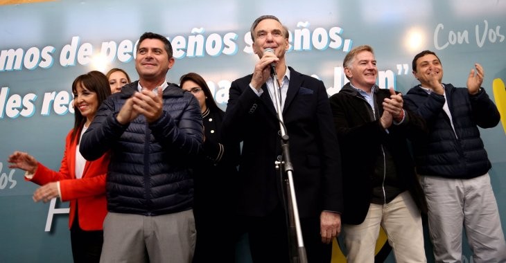 El precandidato a vicepresidente estuvo acompañado por el intendente de Santa Lucía y precandidato a diputado nacional por el Frente Con Vos, Marcelo Orrego, la diputada y precandidata a renovar su banca Susana Laciar, y el intendente de la capital provincial y precandidato a diputado, Rodolfo Colombo.