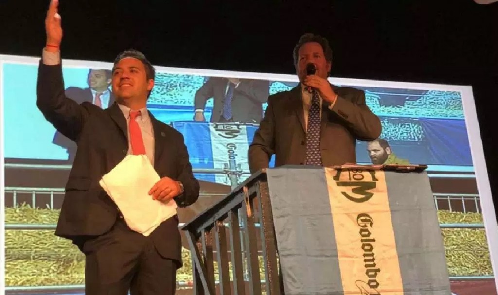 Hernán Vassallo y Juan Pedro Colombo en la subasta de Braford