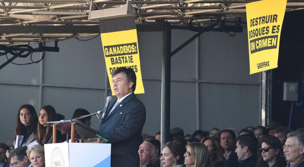 El Ministerio de Seguridad denunció por "intimidación pública" la sorpresiva acción de Greenpeace en la Rural, luego de que el grupo ambientalista internacional lograra infiltrar dos carteles con mensajes contra los desmontes, que se desplegaron en el palco, justo encima de la cabeza del presidente, Mauricio Macri.