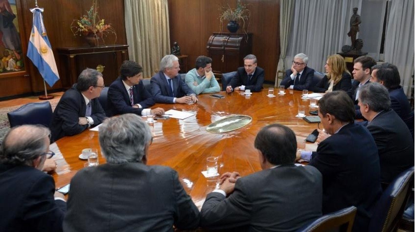 El ministro de Hacienda,Hernà n Lacunza, Miguel Angel Pichetto y Senadores y Diputados del Interbloque Cambiemos, en reuniòn de trabajo.Foto:Presidencia de la Nación