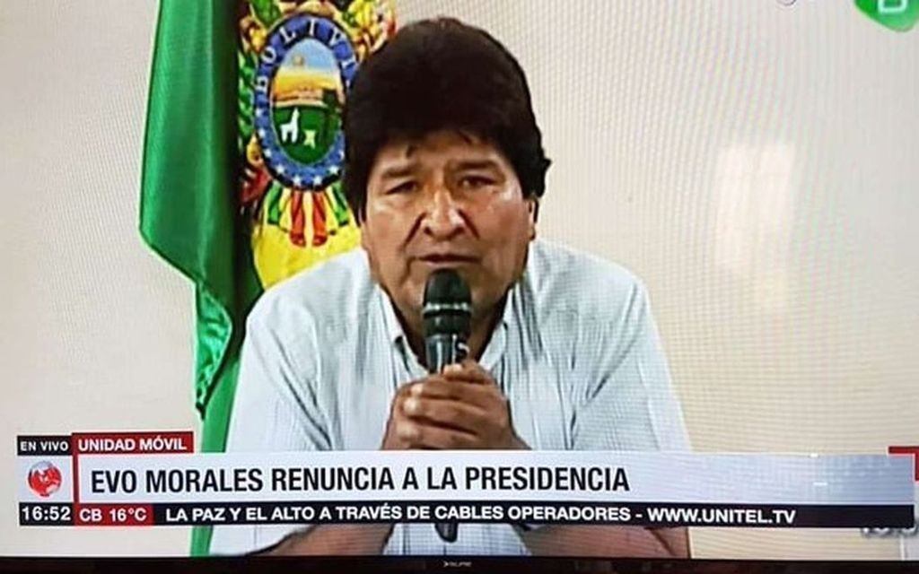 Evo Morales anunció esta tarde, desde Cochabamba, su renuncia a la presidencia de Bolivia. Lo hizo en un mensaje que se transmitió por diversos medios y con un desenlace que llega tras la consumación de un golpe impulsado por la oposición de derecha y la Policía, a las que luego se sumó el espaldarazo de las Fuerzas Armadas que ayer habían asegurado no iban a participar en el conflicto interno y hoy " sugirieron" la renuncia del mandatario boliviano.