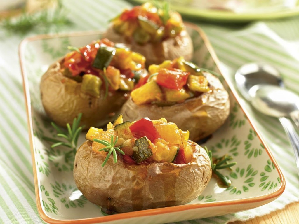 Papas rellenas con salteado de verduras