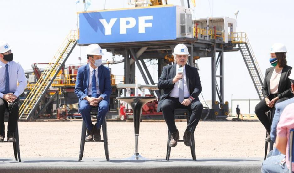 El mandatario nacional estuvo acompañado por los ministros de Economía, Martín Guzmán; e Interior, Eduardo de Pedro; los gobernadores de Neuquén, Omar Gutiérrez; y Río Negro, Arabela Carreras; el secretario de Energía, Darío Martínez; el presidente de YPF, Guillermo Nielsen; y el CEO de la empresa, Sergio Affronti.