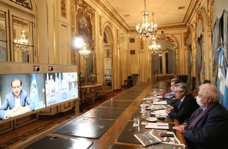 El presidente de la Nación, Alberto Fernández, mantuvo una reunión por videoconferencia con los gobernadores de ocho provincias para evaluar la situación sanitaria y las medidas a tomar en el marco de la pandemia de coronavirus COVID-19.