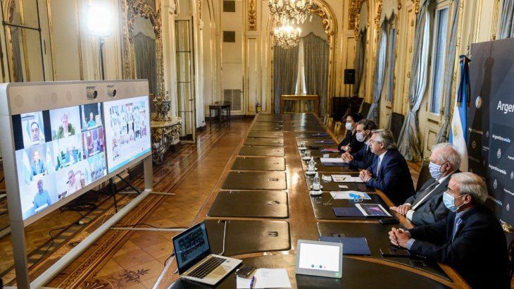 El presidente Alberto Fernández antes del anunció del distanciamiento, mantuvo una videoconferencia con gobernadores para evaluar la continuidad o la modificación de las medidas de distanciamiento y aislamiento social para mitigar los contagios por coronavirus.