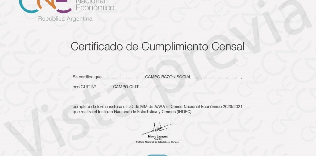 Según la comunicación “B” número 12100 del BCRA, publicada el 4 de diciembre, se solicitará el certificado censal a partir del 1º de abril del 2021 para las personas jurídicas, del 1º de mayo de 2021 para los responsables inscriptos, y del 1º de julio de 2021 para los monotributistas. La exigencia de la documentación, que concluirá el 28 de febrero de 2022, cumple con lo dispuesto en el artículo 11 del decreto nº 3110/70, sostuvo el INDEC.