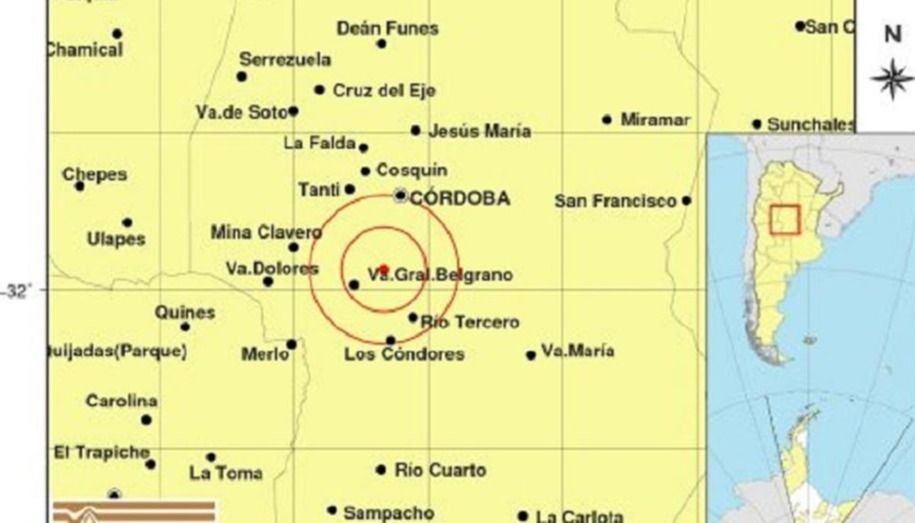 El epicentro tuvo lugar a 55 Km al sur de Córdoba, 246 Km al noreste de San Luis y 23 Km al noreste de Villa General Belgrano.