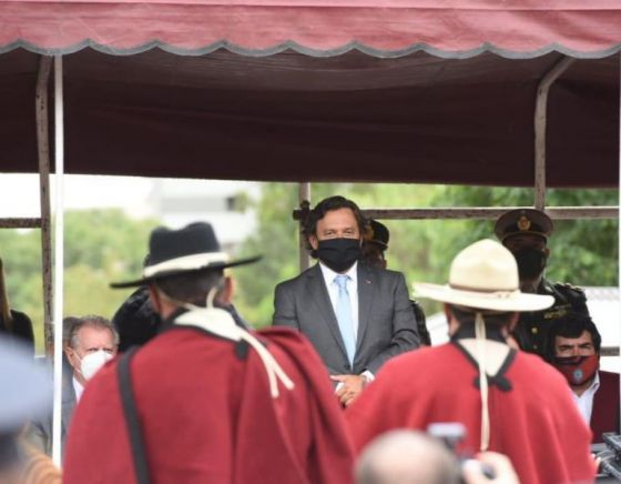 En el lugar, el Gobernador fue recibido en la cabecera de la formación por el jefe de tropa, pasó revista de los efectivos formados y saludó a los Agrupación 20 de Febrero.