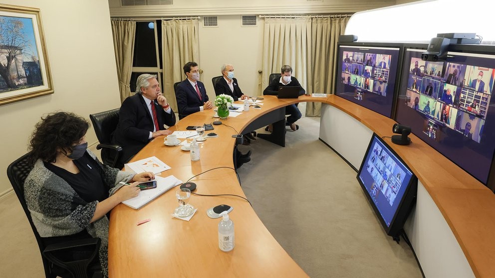 Ese fue el mensaje que les transmitió a los 12 gobernadores con los que estuvo reunido hoy en un encuentro virtual que encabezó desde la Quinta de Olivos. Junto a él estuvieron la ministra de Salud, Carla Vizotti; el ministro del Interior, Eduardo “Wado” De Pedro y el secretario presidencial, Julio Vitobello.