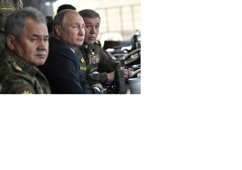 Vladimir Putin acompañado de Jefes militares