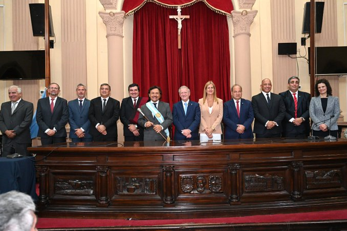 En el recinto de sesiones de la Legislatura, el Gobernador recibió de su familia, los atributos de mando, símbolos de su investidura.